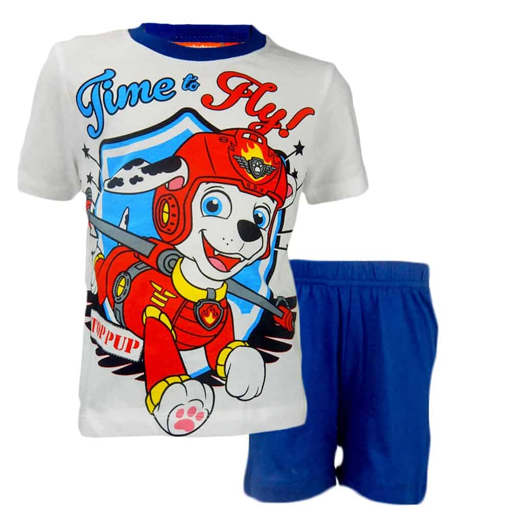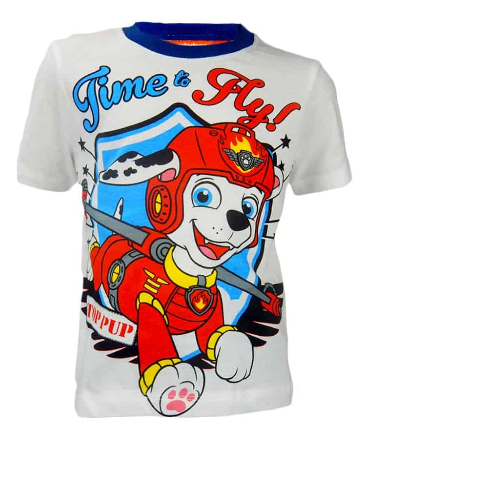 Tricoul pentru baieti este in ton de alb cu personajul disney preferat Marshall.