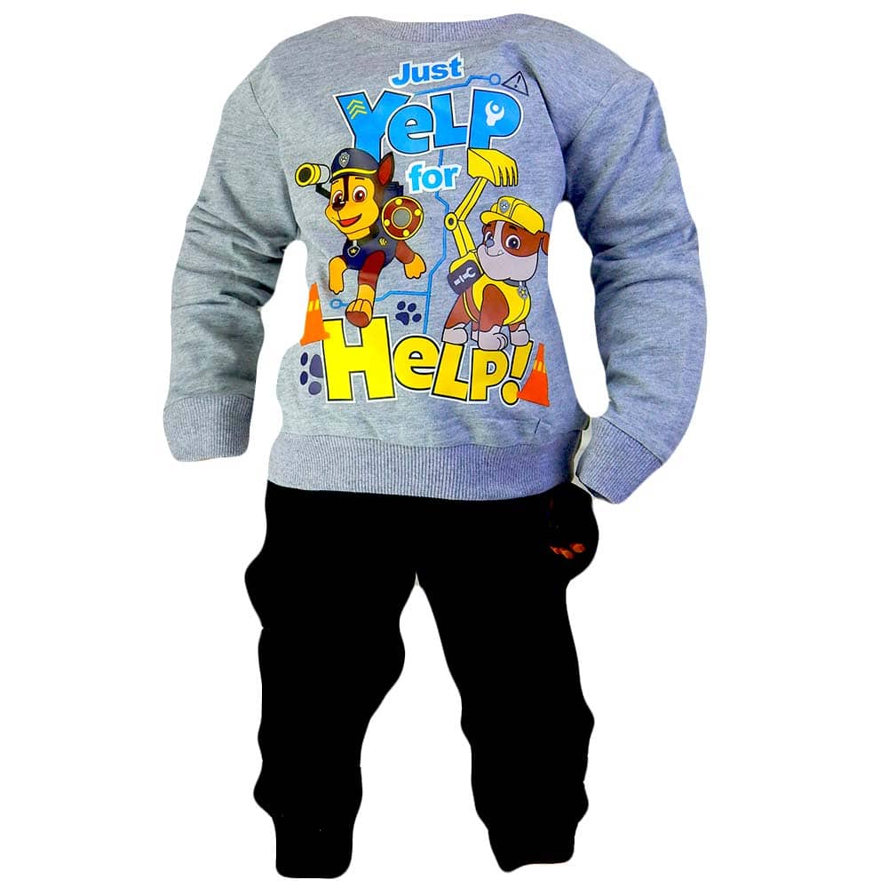 Bluza pentru baieti este in ton de gri cu desenele disney Patrula Catelusilor.