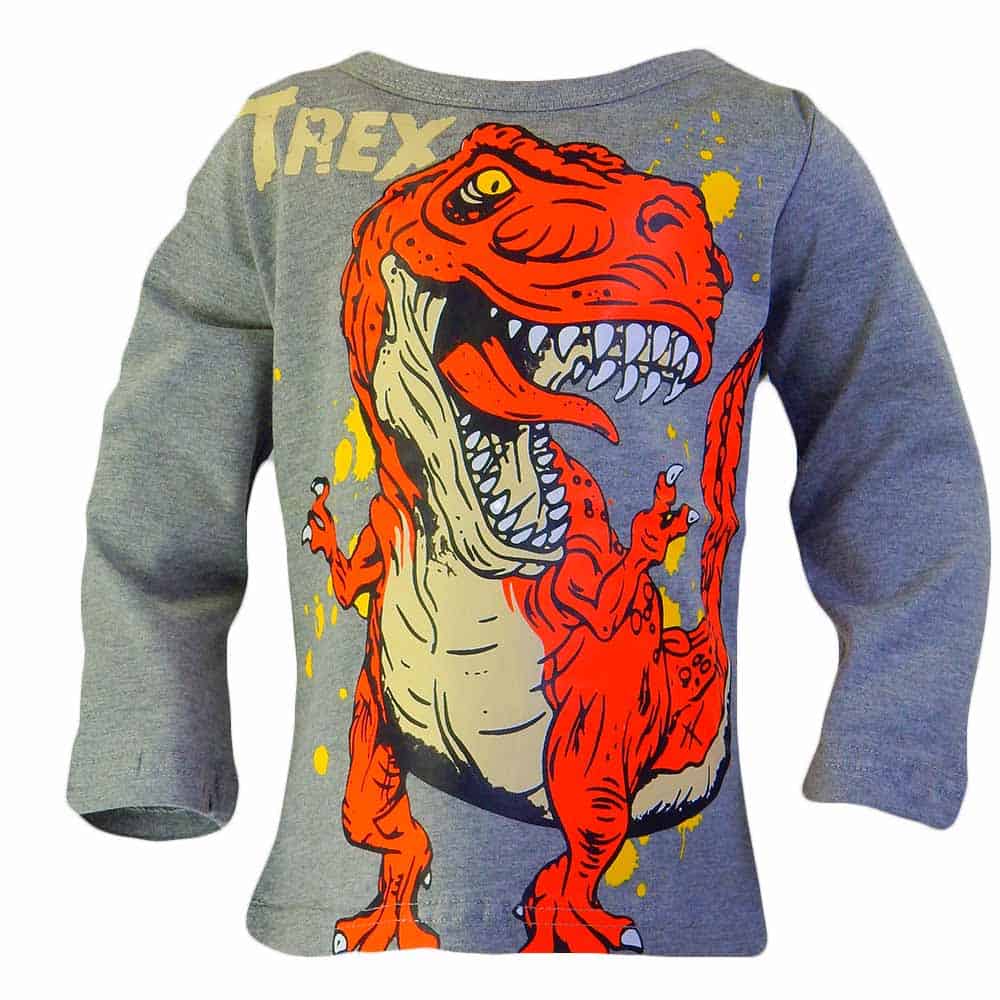 Bluza pentru baieti este in ton de gri cu dinozaurul TREX pe toata partea din fata.