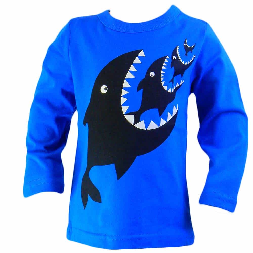 Exploreaza colectia de bluze pentru baieti, bluza colorata cu rechini.