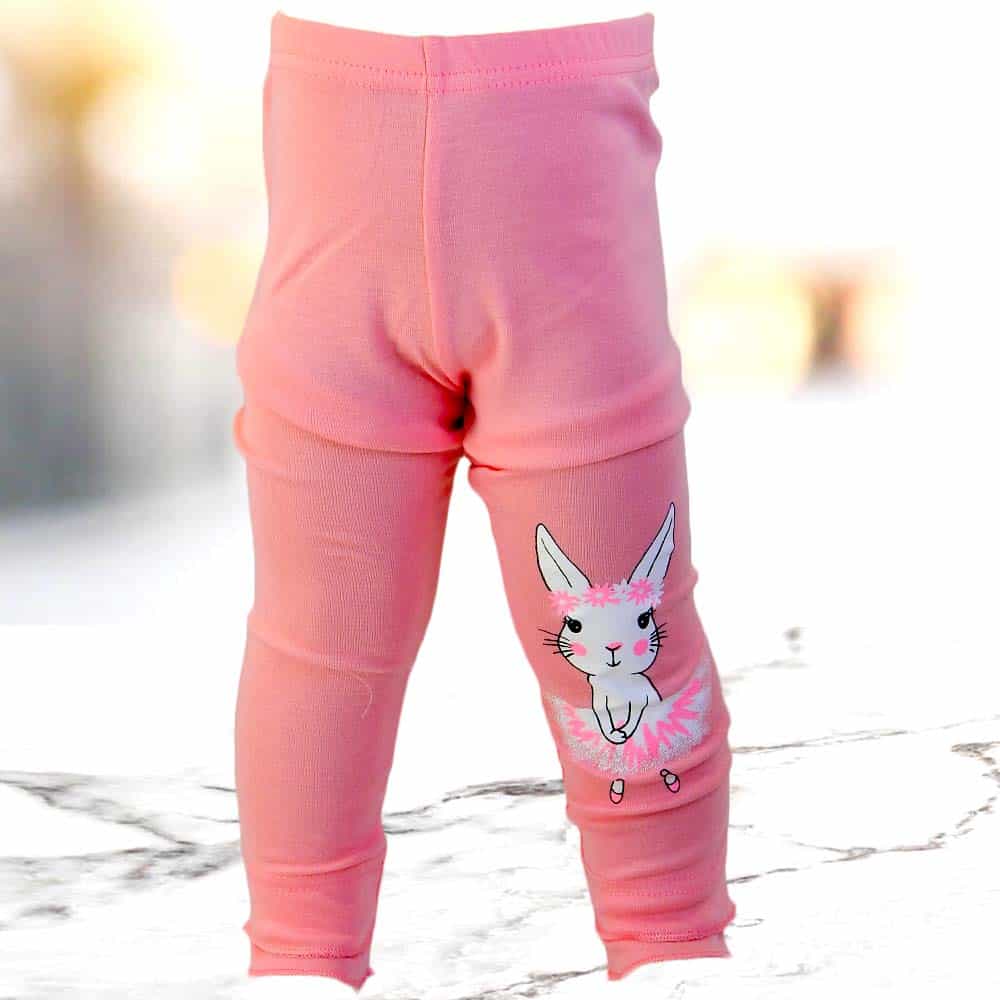 Colantii pentru fete sunt in ton de roz cu Iepuras aplicat in partea de jos.