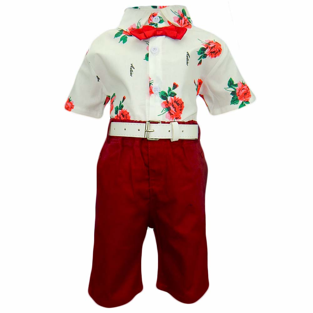 Tip produs: Costum baieti cu camasa, pantaloni scurti, curea si papion;