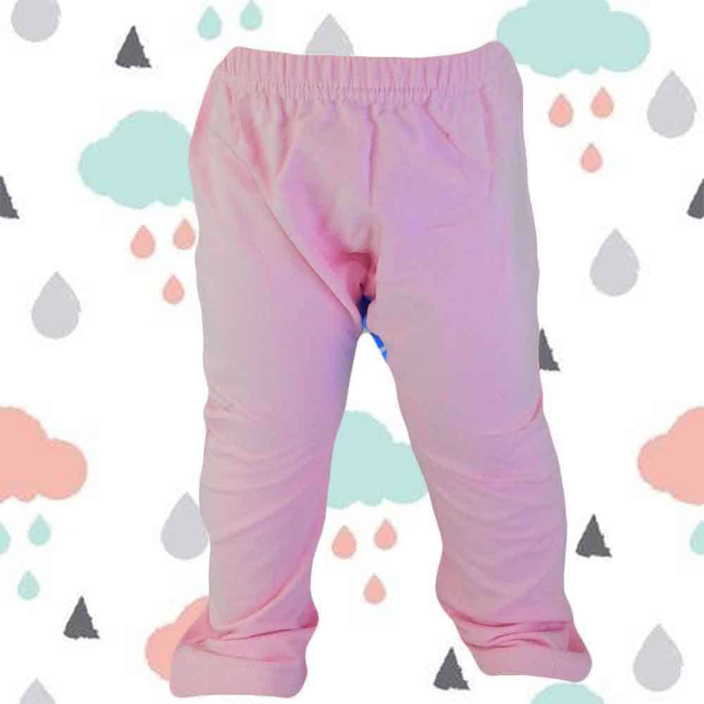 Pantalonii pentru fetite sunt in ton de roz cu un melc si floricele pe partea din spate.