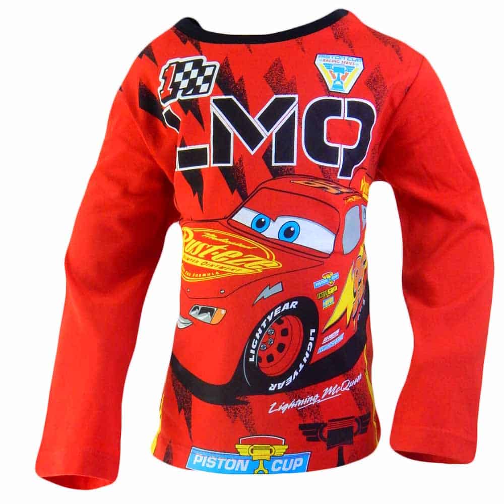 Bluza pentru copii este in ton de rosu cu desenele disney Cars in partea din fata.