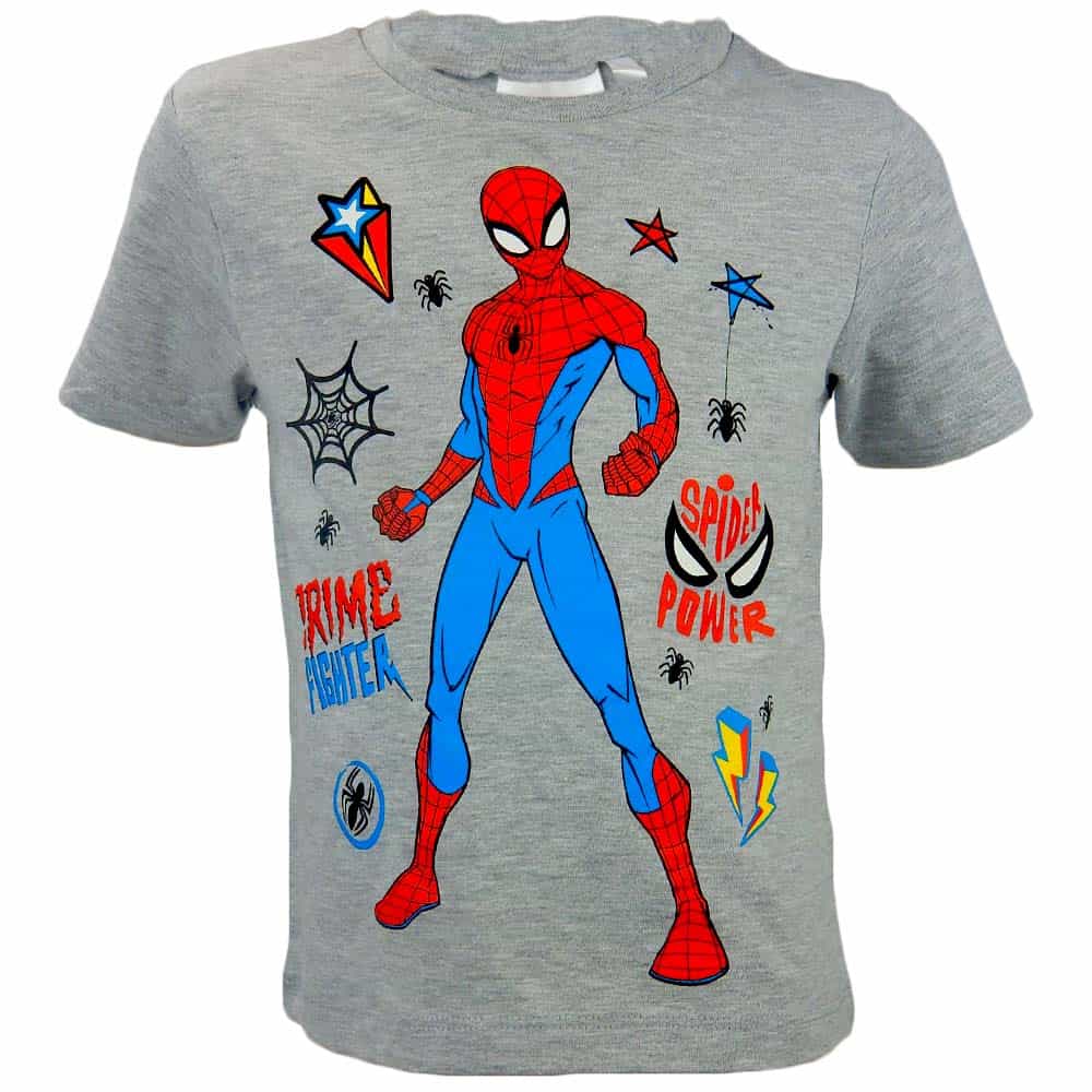 Tricoul pentru baieti este in ton de gri cu Spiderman pe partea din fata.