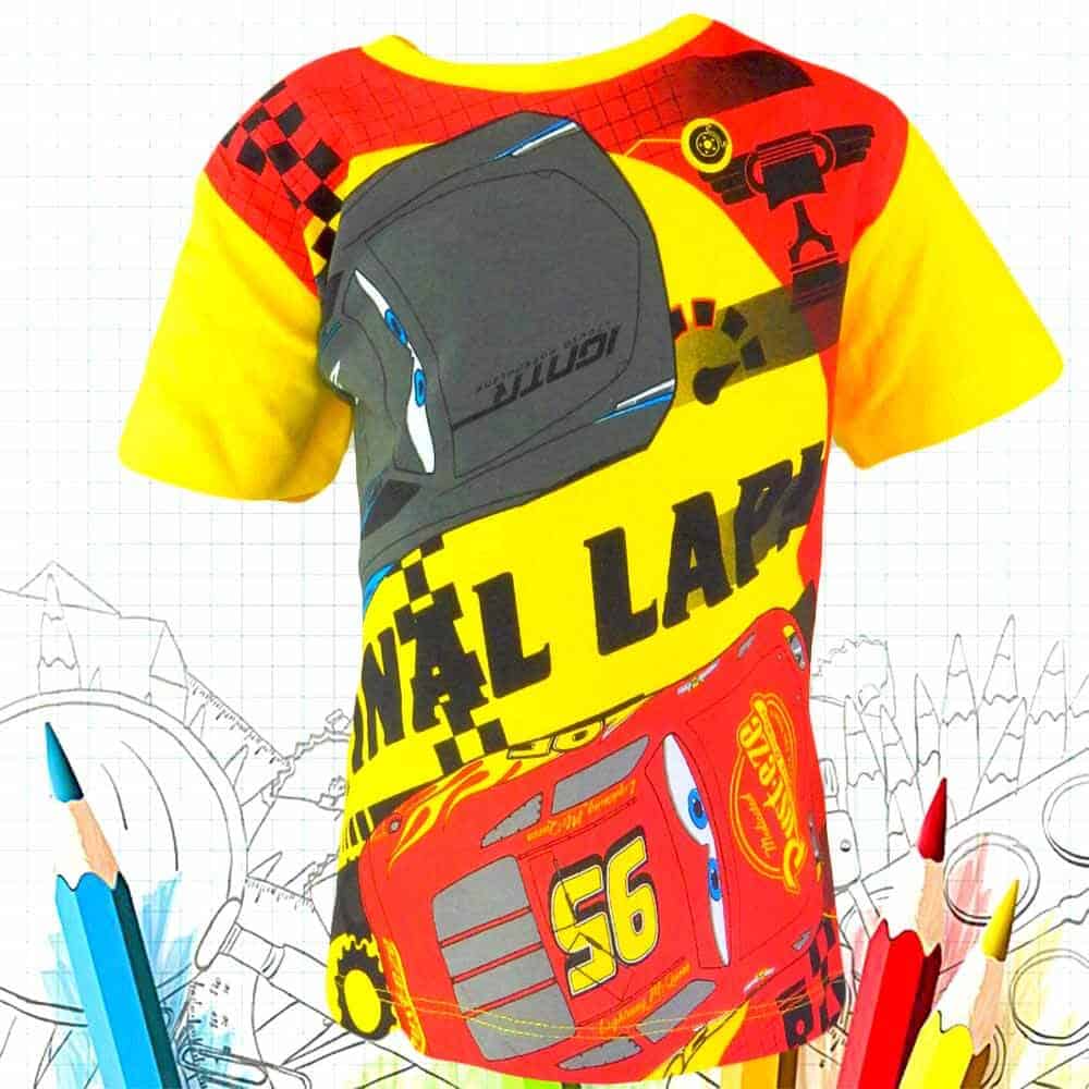 Tricoul pentru baieti este in ton de galben cu desene viu colorate, personajul disney Cars;
