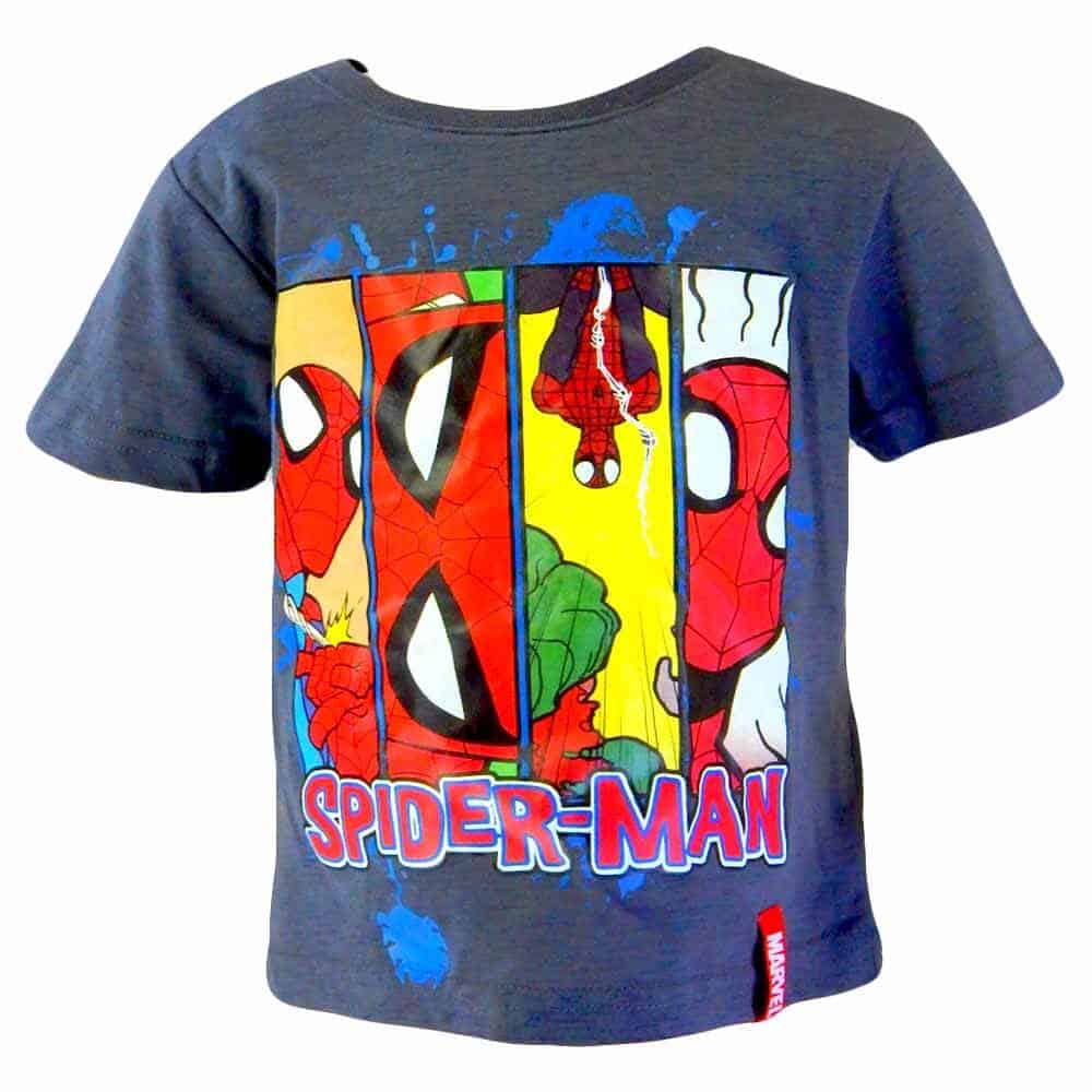 Tricoul pentru baieti este in ton de bleumarin gri cu personajul din desenele disney Spiderman.