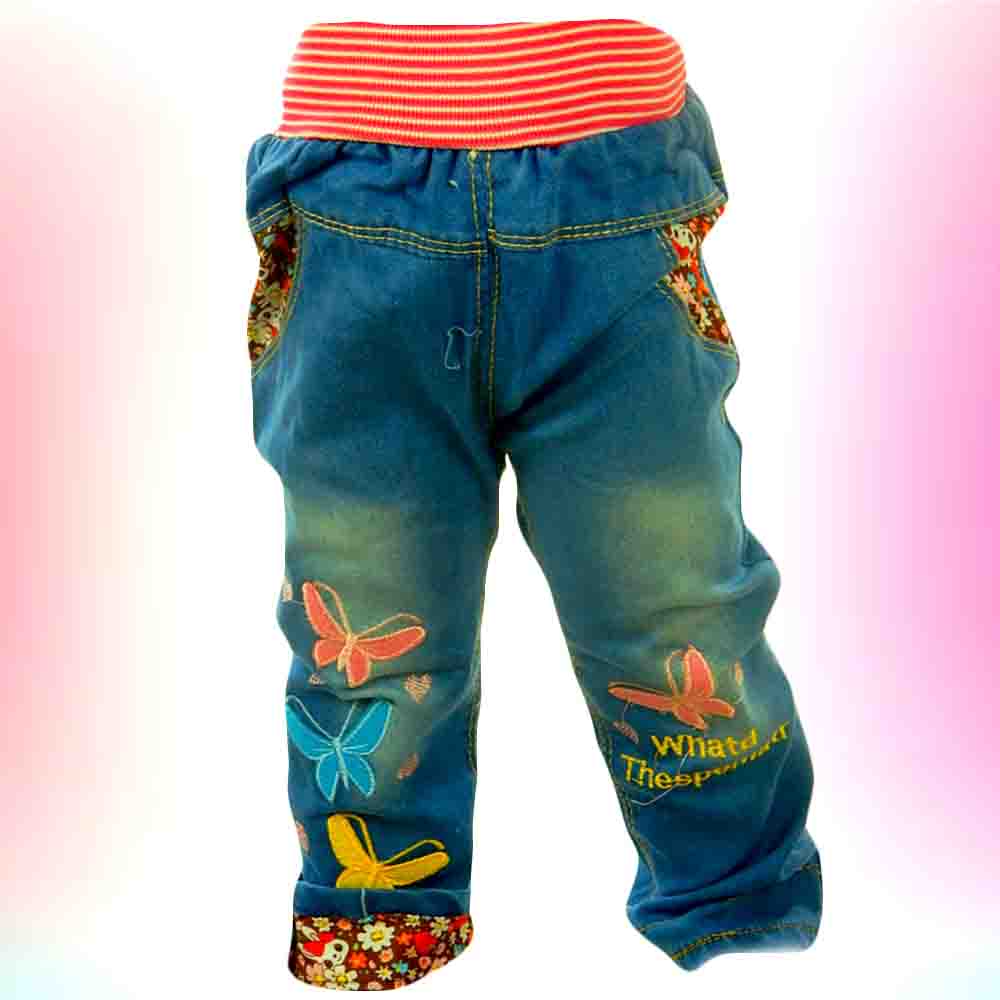 Blugii sunt in ton de albastru deschis cu fluturasi viu colorati;