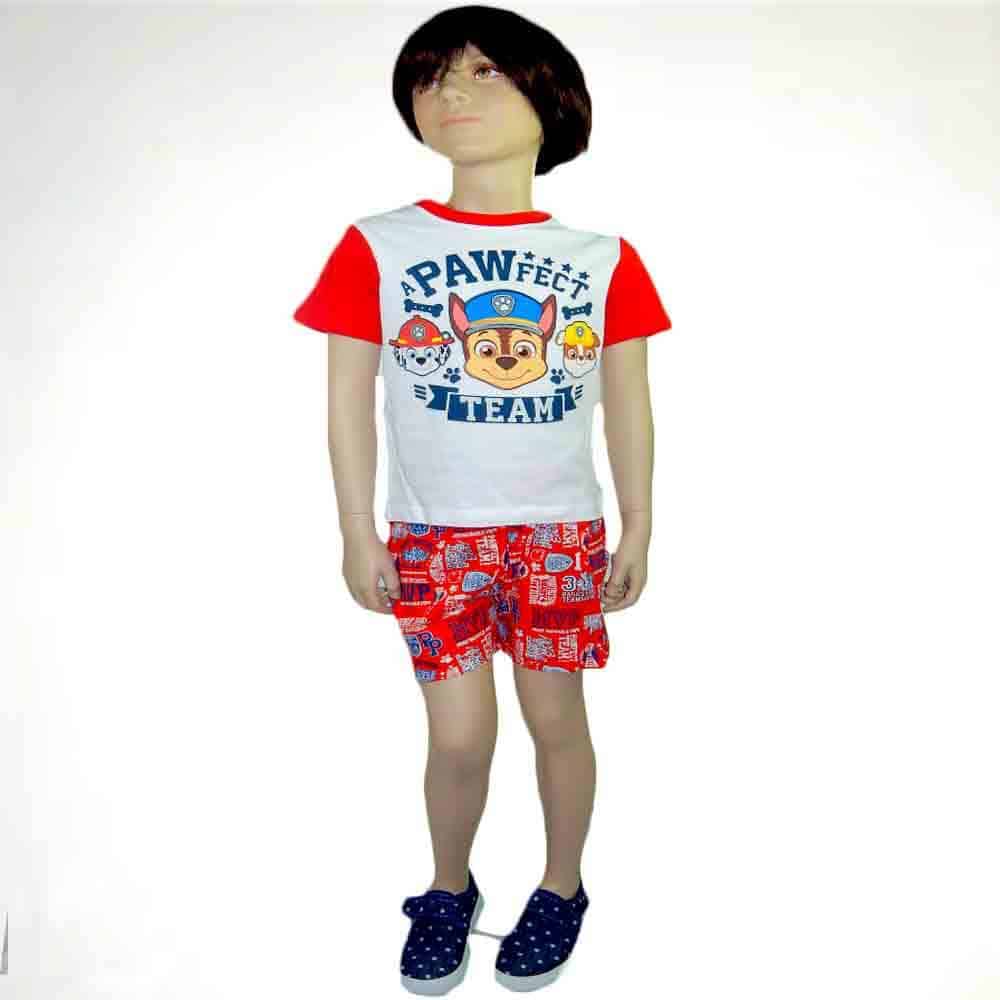 Tricoul este in ton de alb cu rosu cu Paw Patrol;