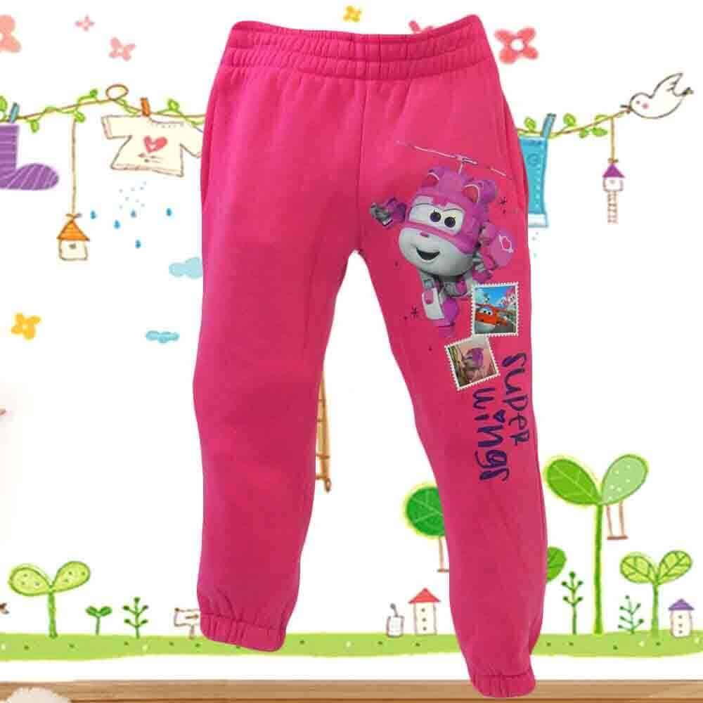 Pantalonii de fete sunt in ton de roz ciclam cu personajul disney Super Wings