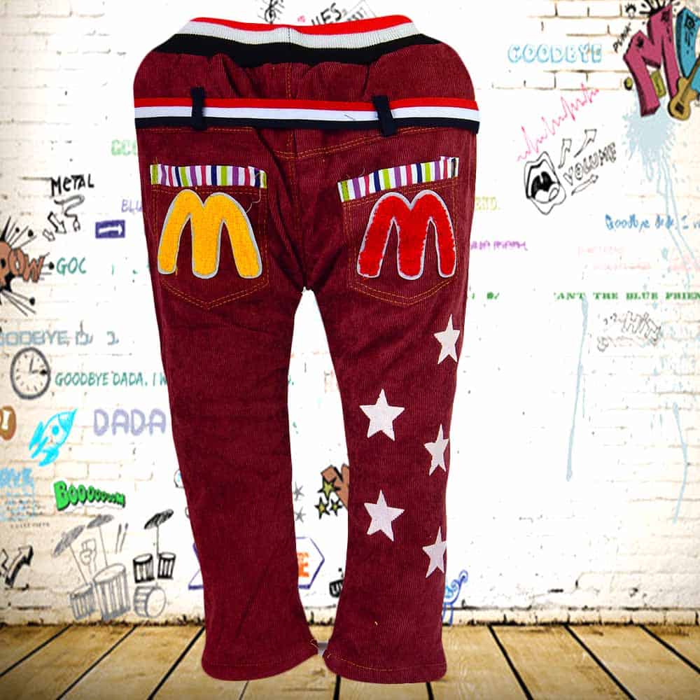 Pantalonii pentru baieti sunt in ton de visiniu, au elastic in talie si buzunare la spate.