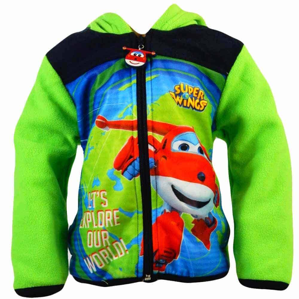 Jacheta/hanoracul pentru copii este viu colorat in ton de verde cu personajul disney Super Wings;
