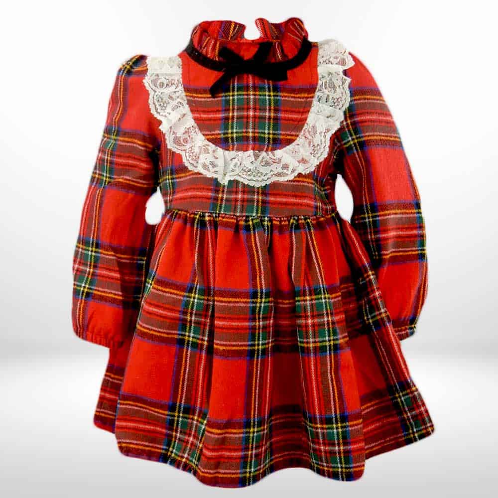 Rochita are aplicata dantela alba pe partea din fata si o fundita in jurul gatului;