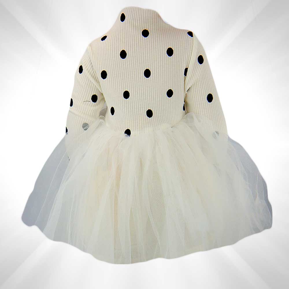 Rochia pentru fete este alba cu buline negre;