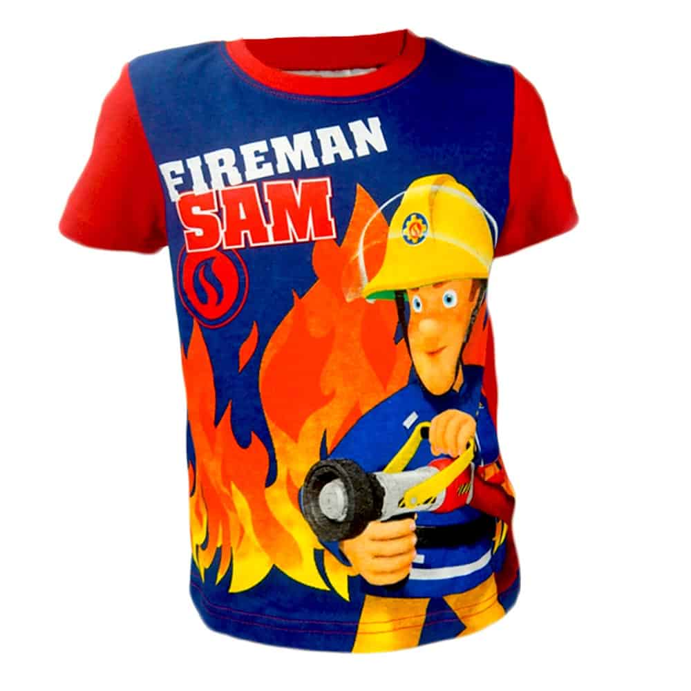 Tricoul pentru baieti este in ton de rosu cu pompierul Sam pe partea din fata.