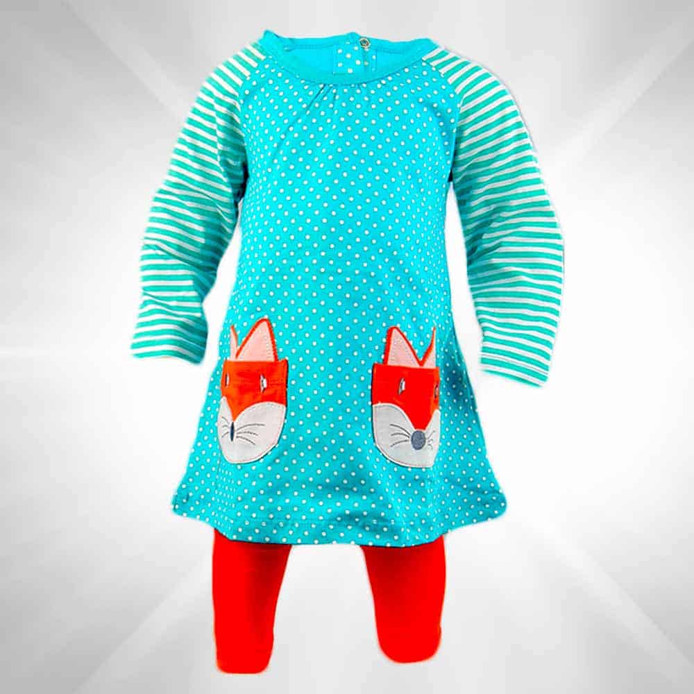 Culori: bluza albastru turcoaz, colanti orange-rosu;