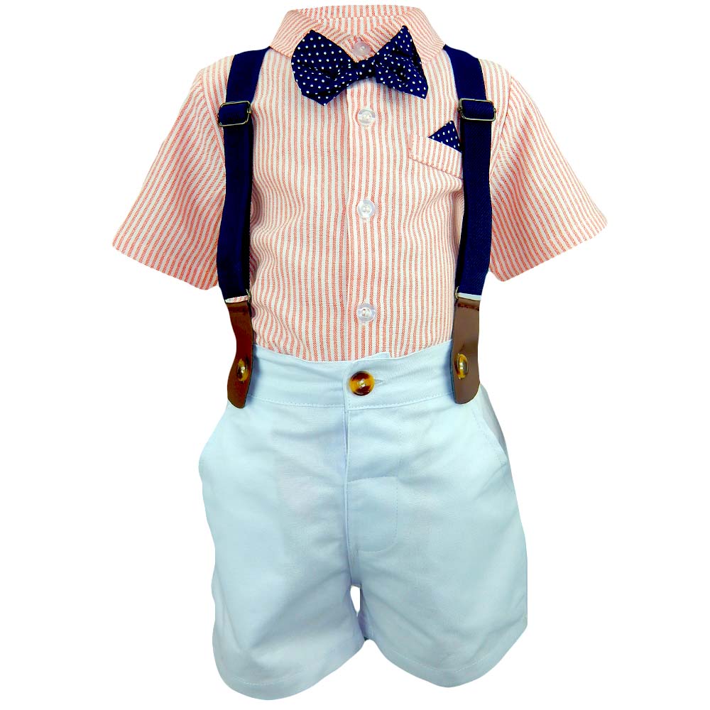 Tip produs: Set baieti cu camasa, pantaloni scurti, bretele si papion;