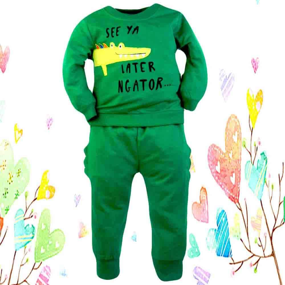 Treningul de baieti din bumbac cu Crocodilul inscriptionat este potrivit pentru o zi de joaca in parc.