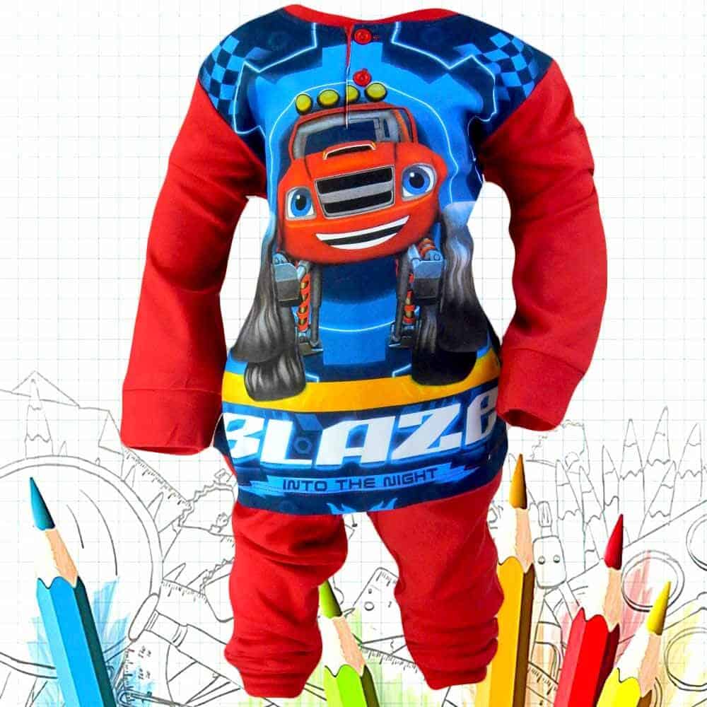 Treningul pentru copii este in ton de rosu cu personajul disney Blaze, masinile uriase;